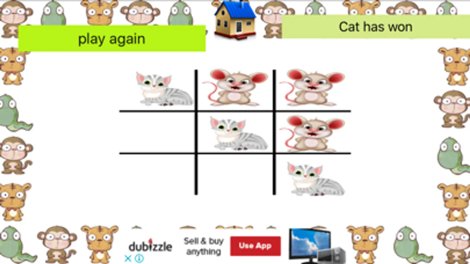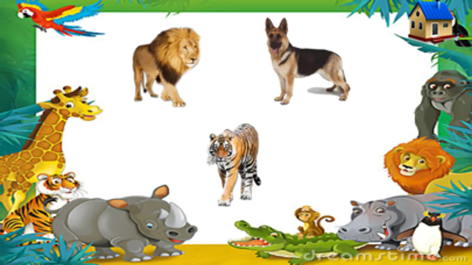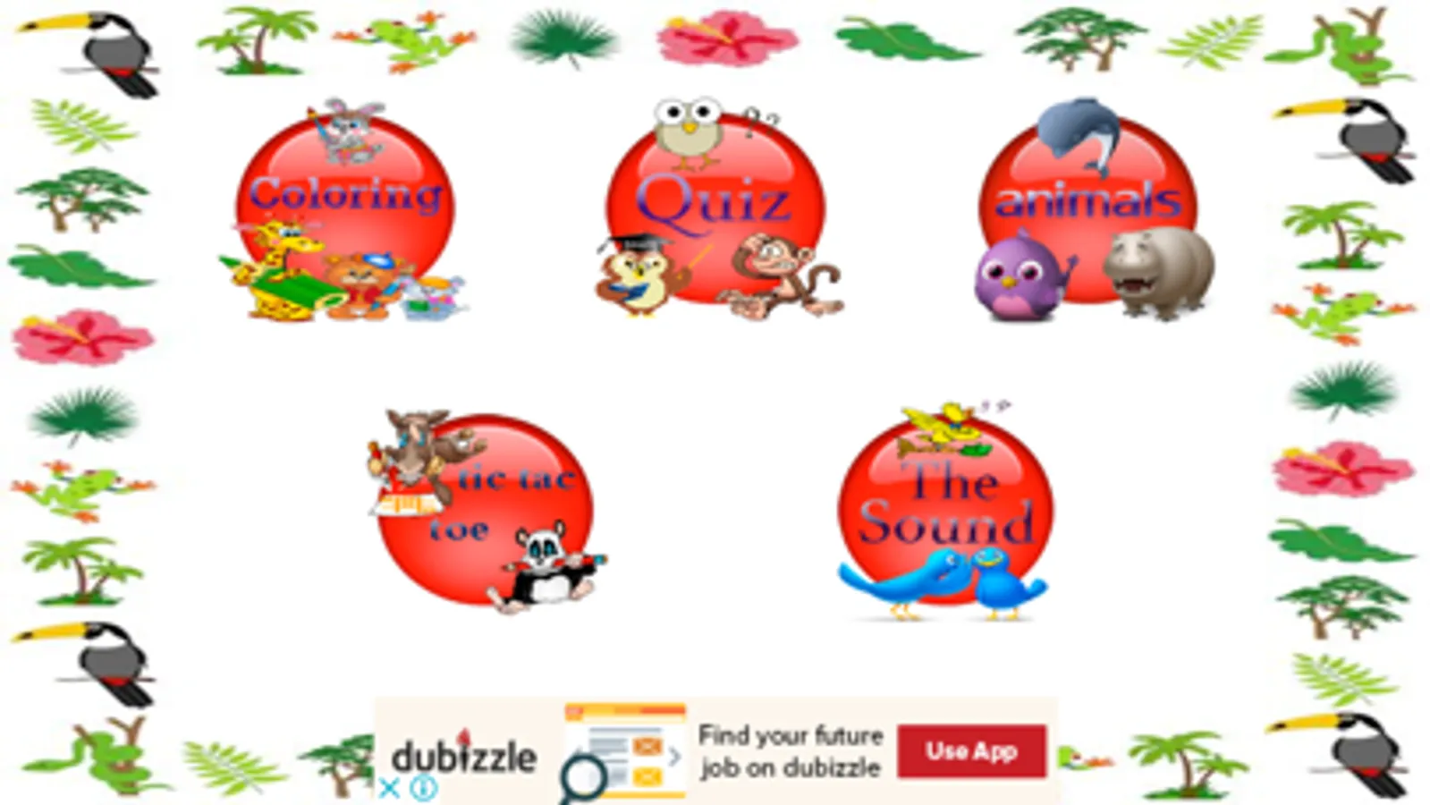 The app learning the animals and there sounds for the kids in the English language with quiz game about the right animal and tic tac toe with animals.