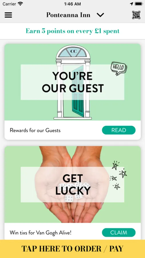 - A loyalty platform that rewards you with 5 points for every £1 spent on the app