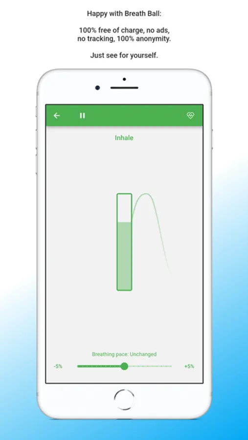 • Breath Ball's breathing-curve is based on observations of hundreds of clients. It's the secret why Breath Balls breathing exercises feel natural and work much better than any of the competing apps.