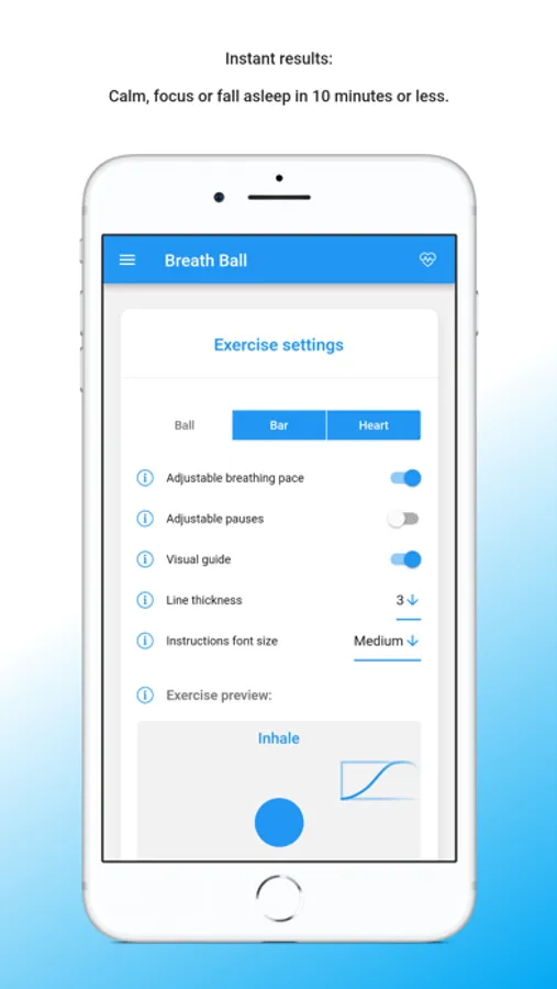 • Maximum customizability: Our well being highly depends on what we like and dislike. Breath Ball is the only app you can fully customize to your liking to give you the one breathing app that feels just right.