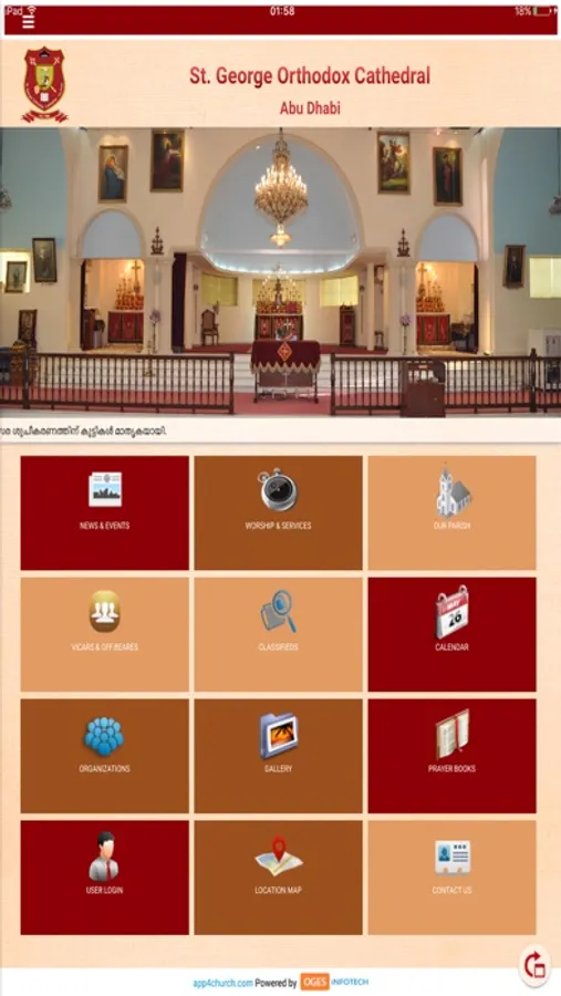Abu Dhabi St. George Orthodox Cathedral is one of the parishes under the Brhamavar Diocese of Malankara Orthodox Syrian Church of the East (Indian Orthodox Church) founded by St.Thomas, one of the twelve Apostles of our Lord Jesus Christ , in AD 52 whose supreme head is the Catholicose of the East.