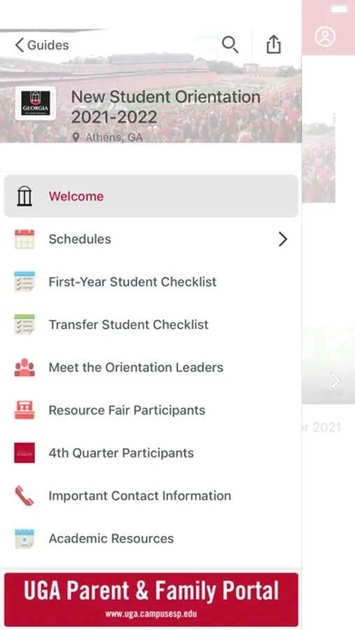 Orientation at the University of Georgia is a hallmark event for many new students and families. The Welcome to UGA app provides useful information for the New Student Orientation session that students attend as well as campus resources that are available throughout your UGA career. This is a great resource to have at your fingertips to help you access the resources you need when you need them. Transitioning from successful admission to the UGA to your first night on campus can be tough, but the tools available here are set to make your time adjusting to life as a Bulldog, a smooth one.