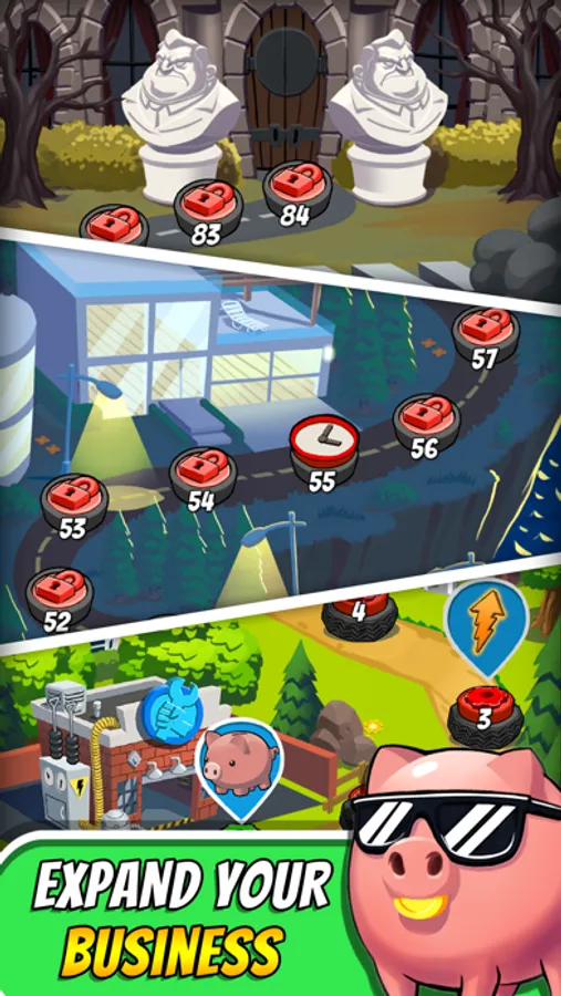 Tap your way to a monopoly with genius inventor Kim and your trusty sidekick, Piggy B!