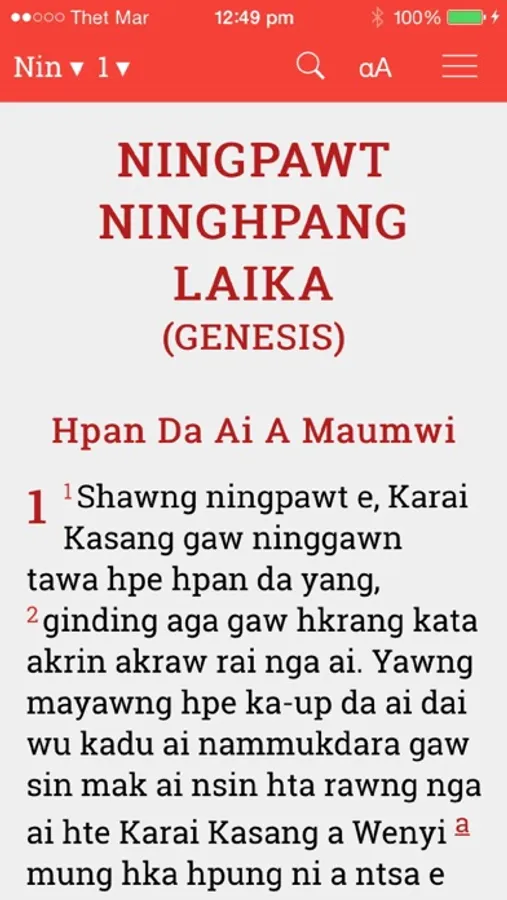 Jinghpaw Bible in Kachin - Common Language version is a mobile Bible app for the purpose meeting the need of today, making the Word of GOD accessible at iOS devices anytime anywhere even without internet connection. Common Language version is as to meet today's standard words.