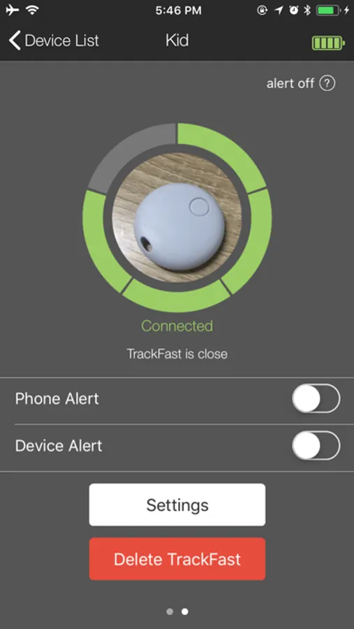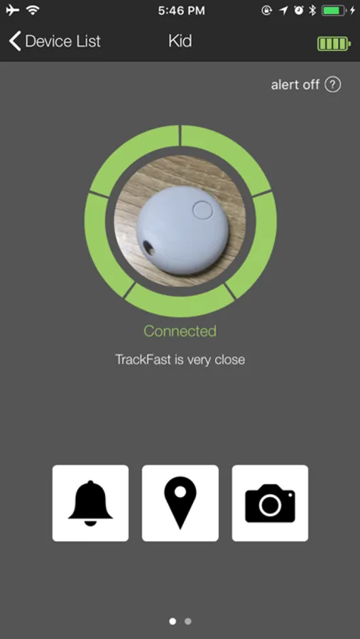 Find items: Tap the "Ring" button on the App and the TrackFast device will sound alert.
