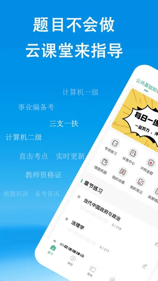 【实时资讯】资讯栏目可提供精准考讯及备考信息。·签到打卡 鼓励用户签到打卡建立学习习惯,自适应学习。