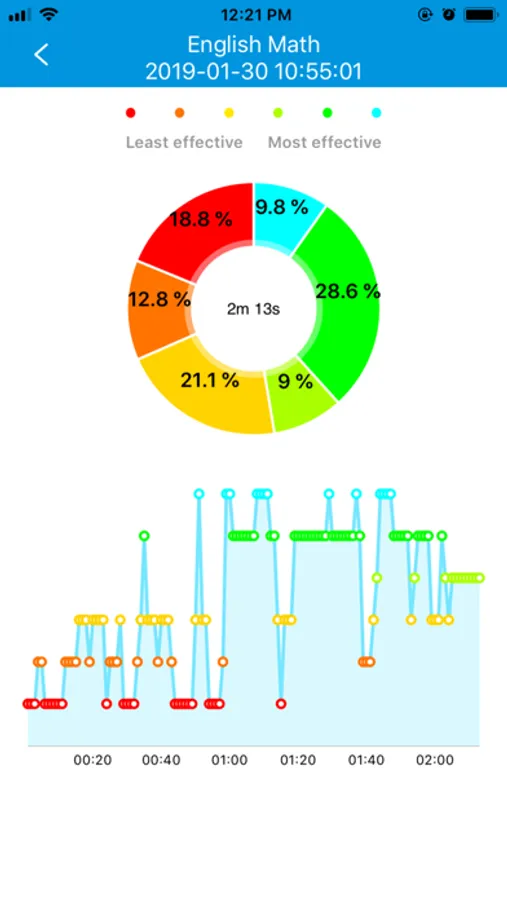 * Session report includes a time plot of your effectiveness for the duration of study and a pie chart of different color percentages