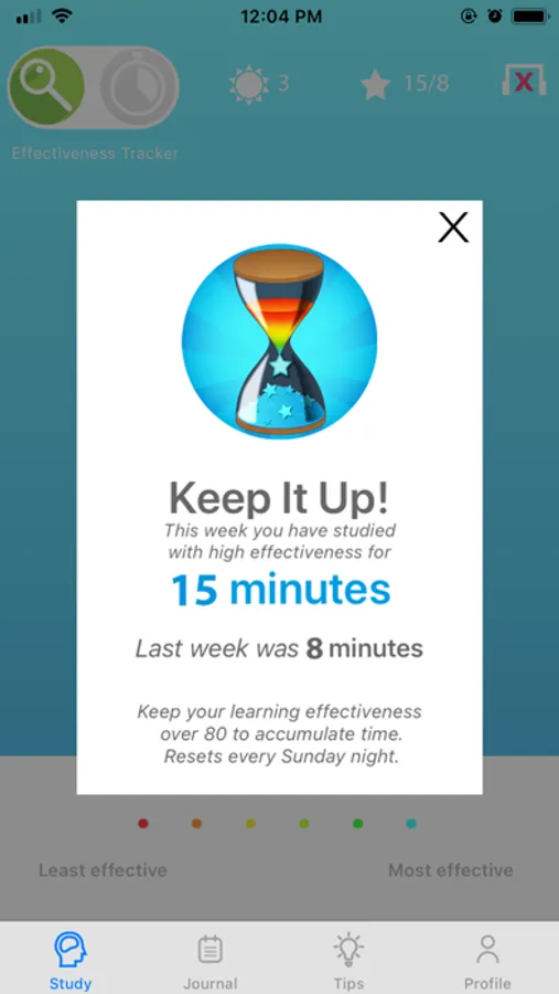 * Feedback on your learning effectiveness in 6 colors from most to least effective: blue, green, yellow-green, yellow, orange and red