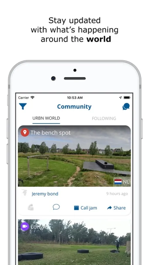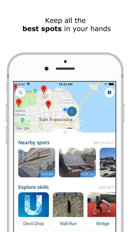 Use the chat to connect with other traceurs. Easily exchange tips, spots locations, moves and skills to achieve. See other Jumpers in your region with the “nearby traceurs” feature.
