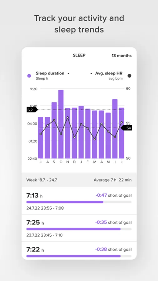 View key training, activity and sleep summaries as well as overall trends to help keep your life in balance.