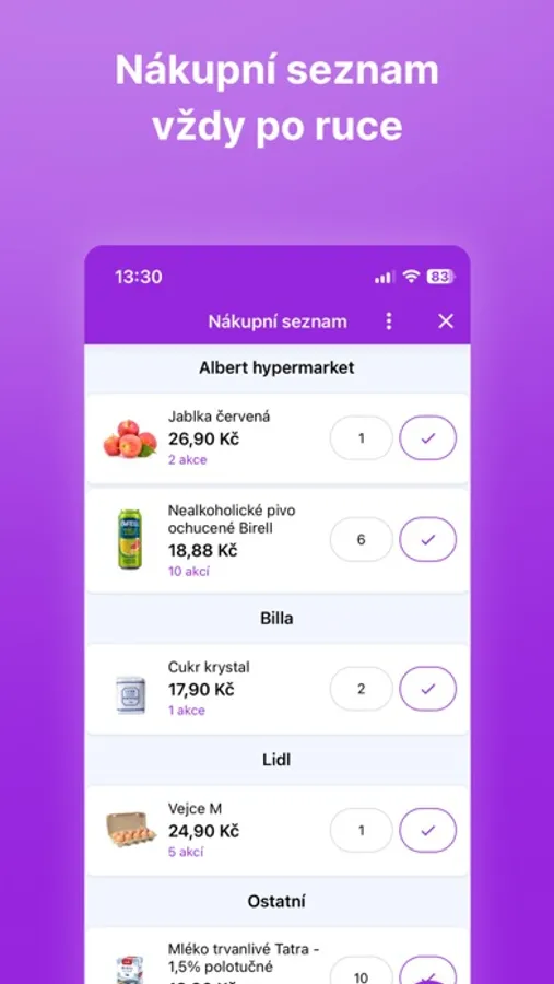 - Upozorníme vás na slevy oblíbených produktů nebo když vyjde leták vámi oblíbeného obchodu.