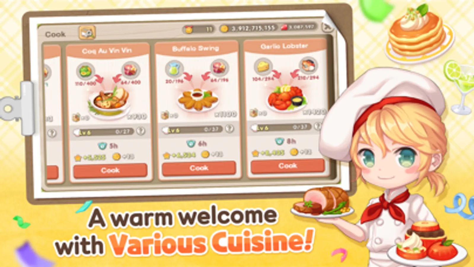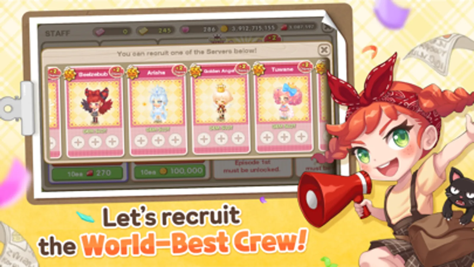 - Recruit your Crew and grow your Pet to manage the restaurant.