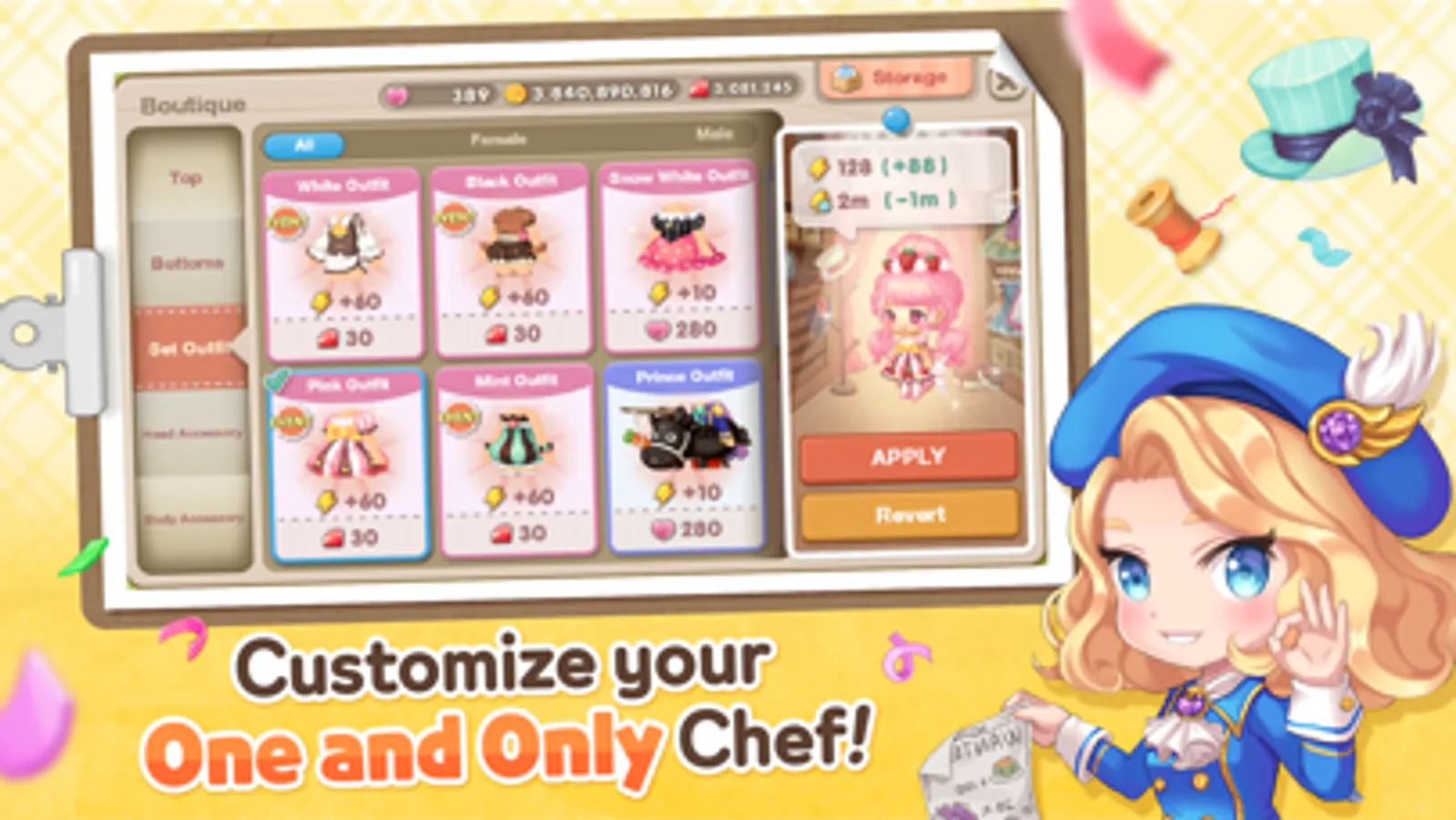 - Decorate your own chef with dozens of costumes as much as various dishes!