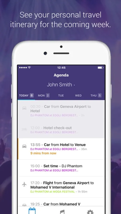 - Personal travel itineraries for each of the touring crew, supporting everything from private jets to walking, all visible on interactive maps.