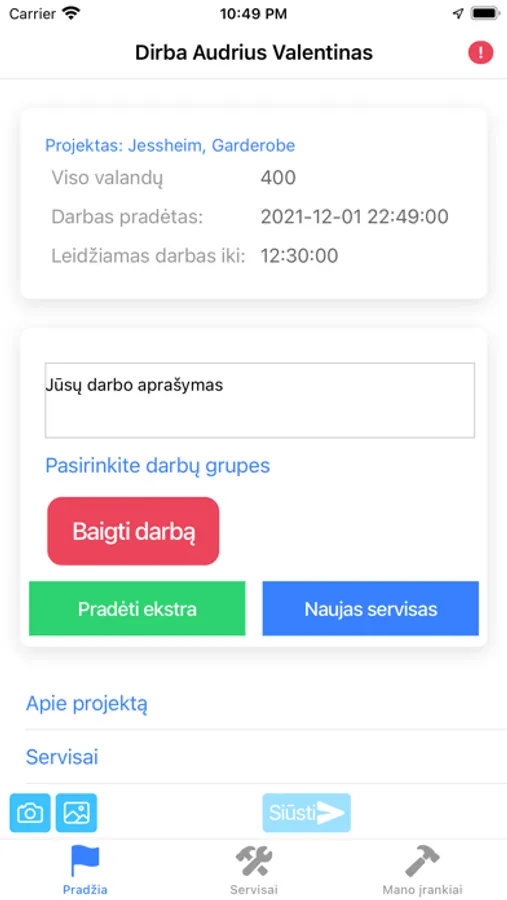 This application will take care of your work time registration, getting tasks and messages from your manager.
