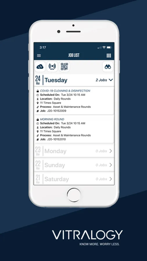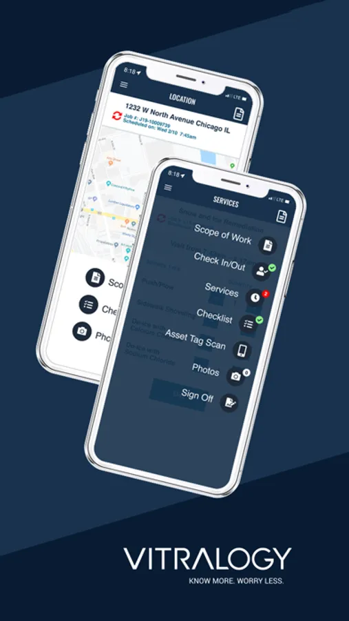 The Vitralogy Vendor Application connects vendors and customers on the Vitralogy platform. Review schedule of jobs, check in, take photos, complete checklists, record corrective actions, and enter conclusion. Customers will have immediate access, ensuring full visibility to the work performed.