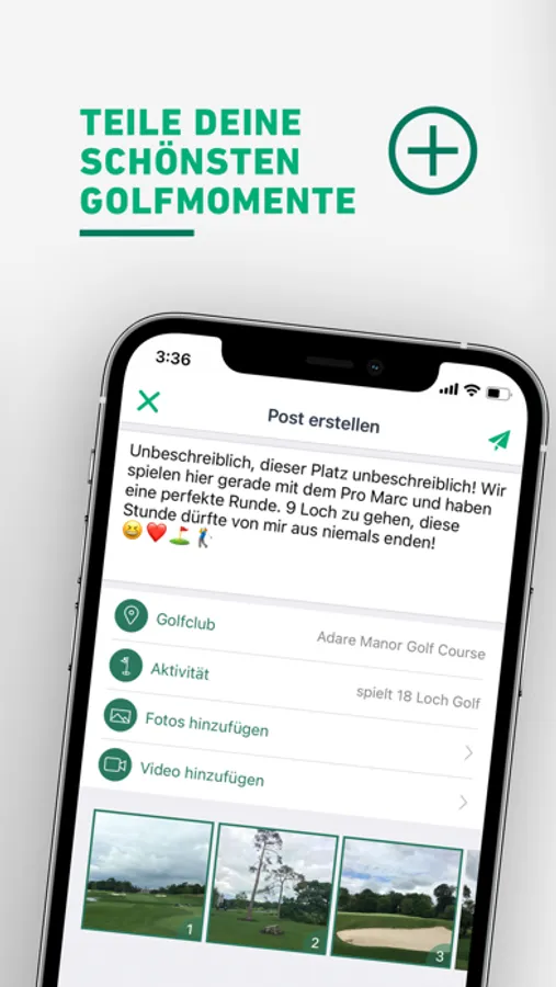 Mit der Golf Post App kannst Du ganz einfach die schönsten Bilder vom Golfplatz hochladen und sie mit der Golf-Community teilen. Egal ob vom Abschlag, auf dem Fairway und nach dem gelochten Birdie-Putt. Sammle likes und teile deine Aktivitäten mit der Golf-Community.