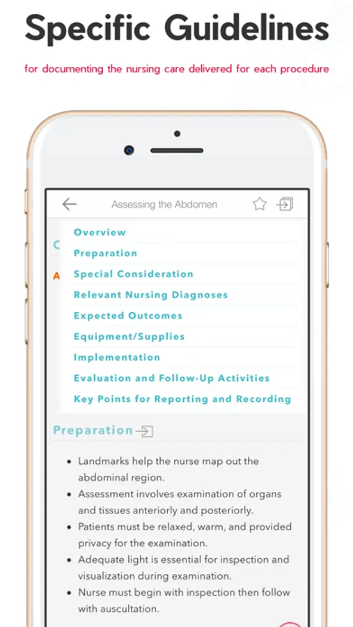 - Specific guidelines for documenting the nursing care delivered for each procedure - important information for today’s increasingly complex healthcare environment.