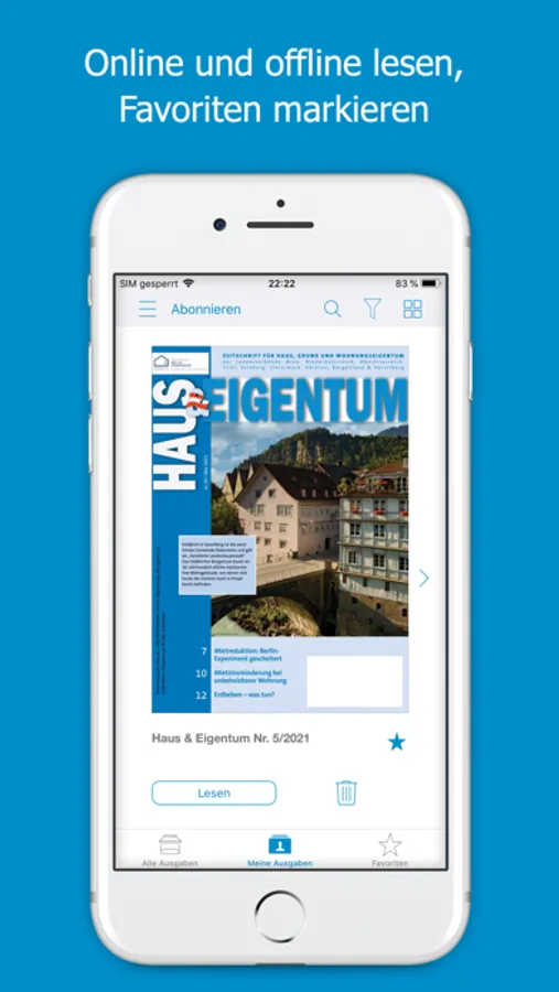 Die elektronischen Ausgaben von Haus & Eigentum stehen den Mitgliedern der Landesverbände kostenlos zur Verfügung. Die Zugangsdaten erhalten Sie bei Ihrem Landesverband.