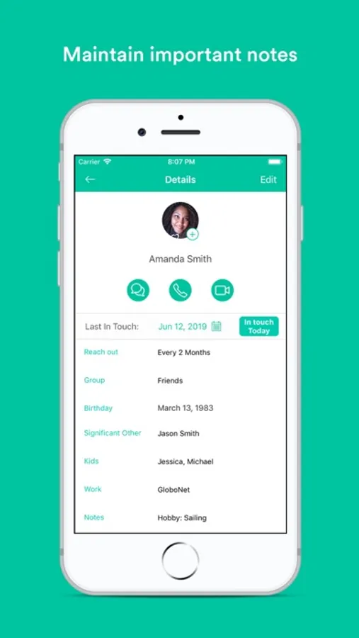 Save notes for each contact to refresh your memory of important details, or of your last conversation.