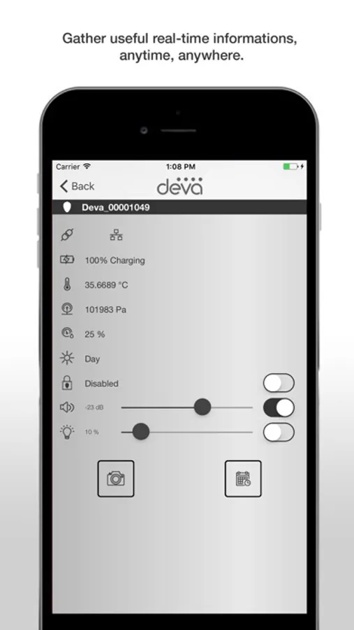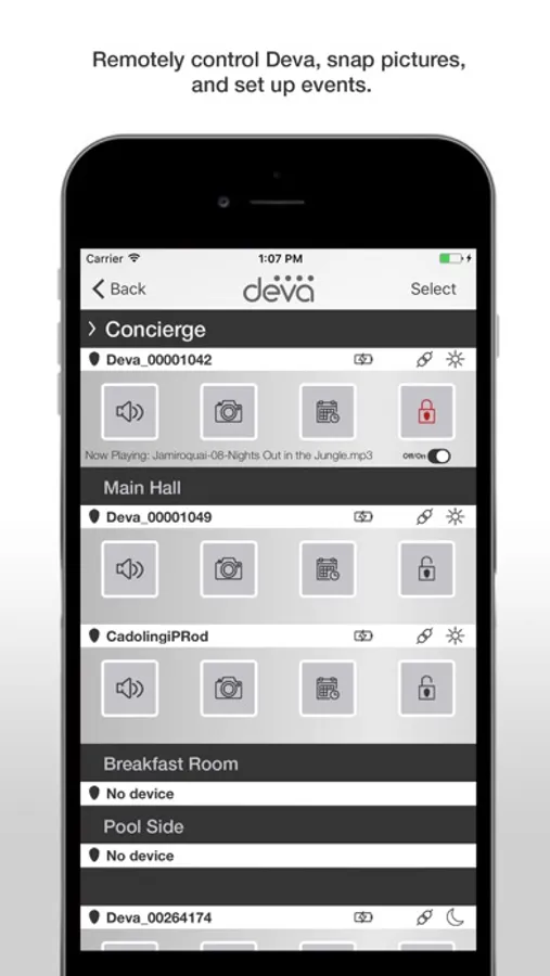 Deva Control Panel enables in depth control and management of simple and complex Deva systems. Access all functionalities remotely, manage playlists, take pictures, record and play messages, read real time data from the device and its surroundings, anytime, anywhere.