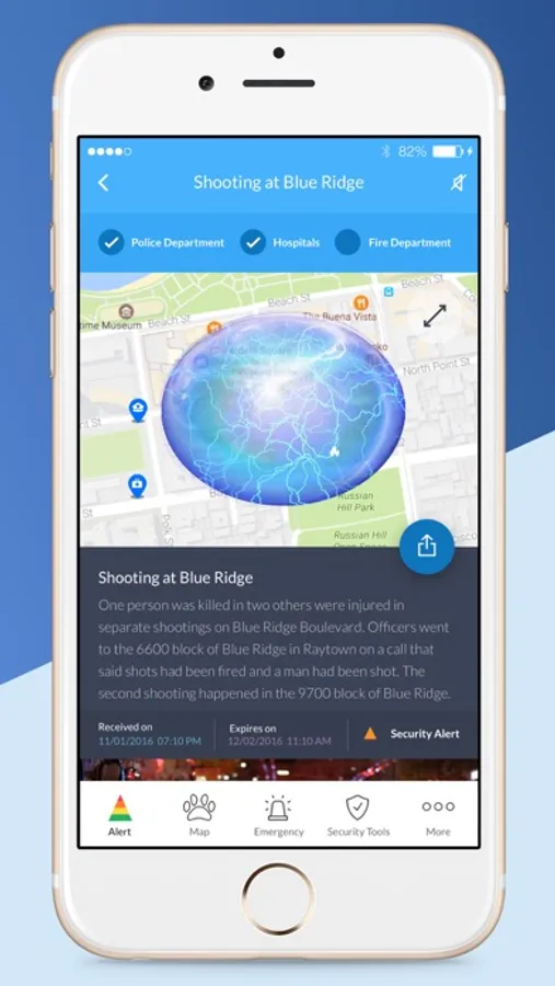In the worst-case emergency, such as an active shooter alert, the app would issue an alert warning.