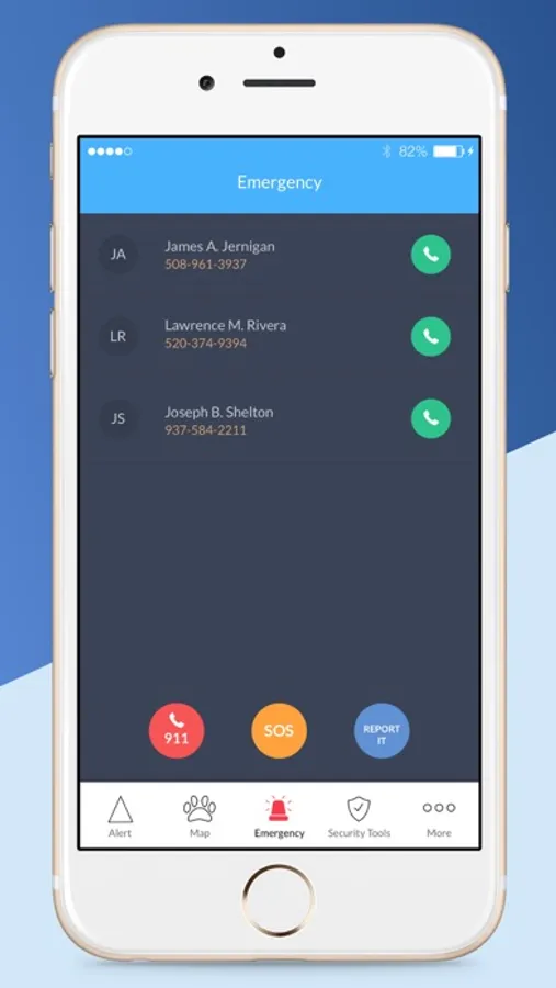 The app includes a “Call 911” button and an “SOS” button which calls the 24/7 Shepherd Shield dispatch center (located in the USA). A user needs to have a cellular connection to make such a call.
