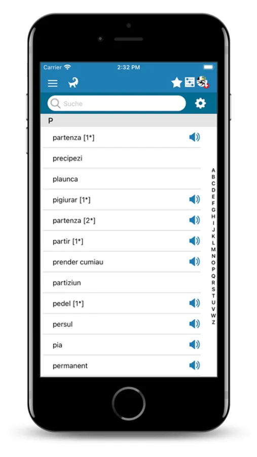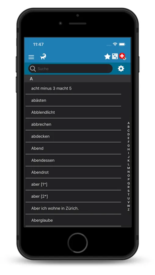 • Mit einem Wisch durch das Alphabet können sie via SCHNELLSUCHE direkt zur gewünschten Wortgruppe springen.