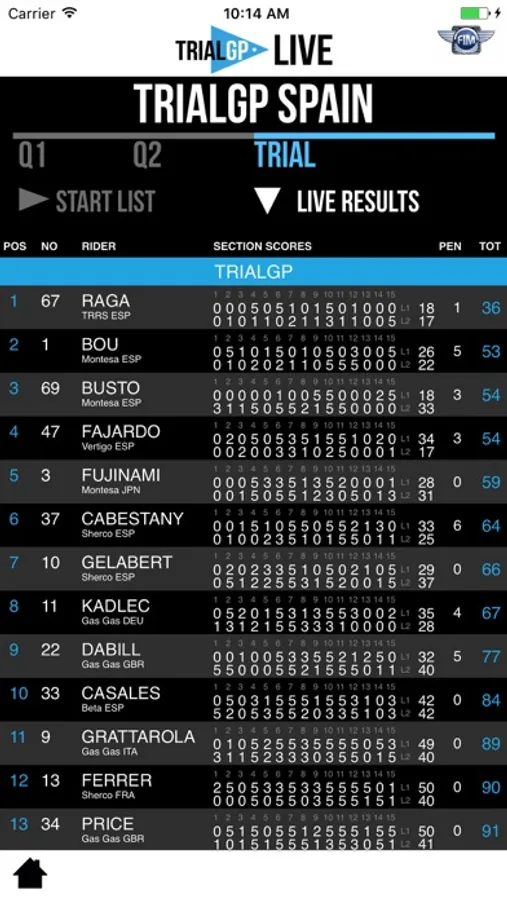 Fully updated for 2019 TRIALGP LIVE app provides real time results direct from all eight rounds of the 2019 individual series plus the team competition in an easy to follow section by section format.