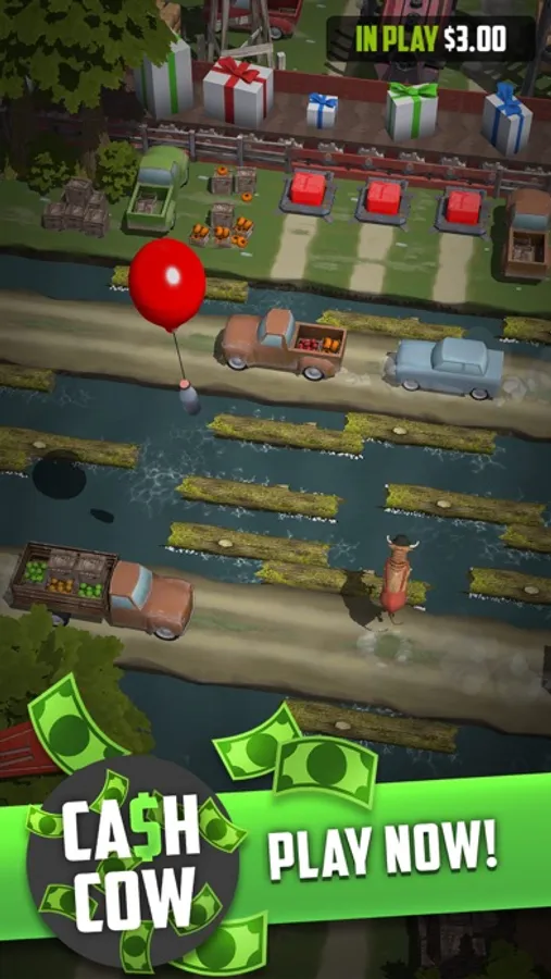 Help the cow cross the road! Avoid cars, jump on logs and open exciting packages in this new beautiful take on a classic game! Pop balloons to collect milk bottles and unlock new characters!