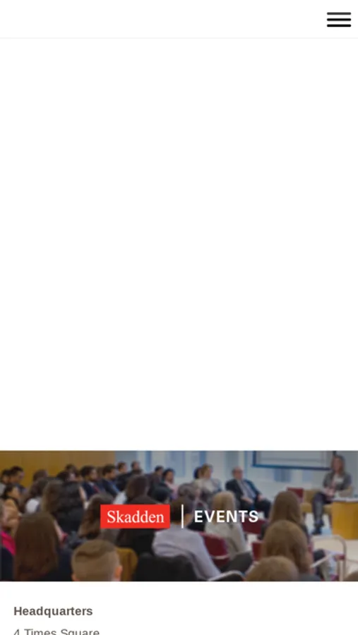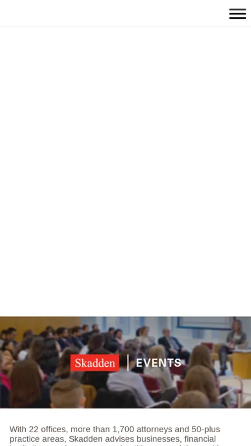 Skadden Events is a mobile app which allows you to access content and features from Skadden programming, learn more about our capabilities, and get in contact with us.