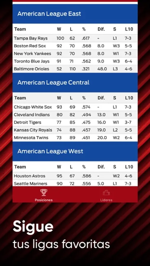 No importa de que equipo seas, sigue a todos los equipos por igual, recibe notificaciones de los juegos, noticias, de lo que se habla en las redes sociales y no te pierdas de la acción de esta temporada.