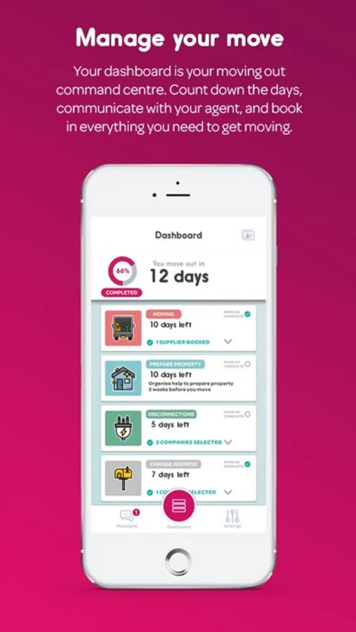 If you’re moving out, you need Move Me Out. Our easy to use app helps you communicate with your agent, book in everything from removalists to preferred cleaners, update your address details, disconnect your utilities, and, most importantly, get your bond back.
