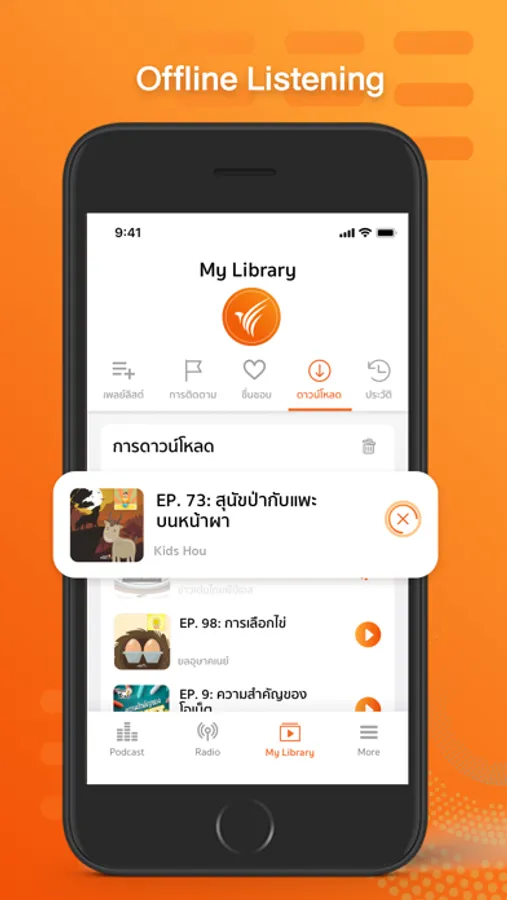 • Offline Listening - ดาวน์โหลดพอดคาสต์เก็บไว้ฟังได้ แม้ยามไร้อินเตอร์เน็ต