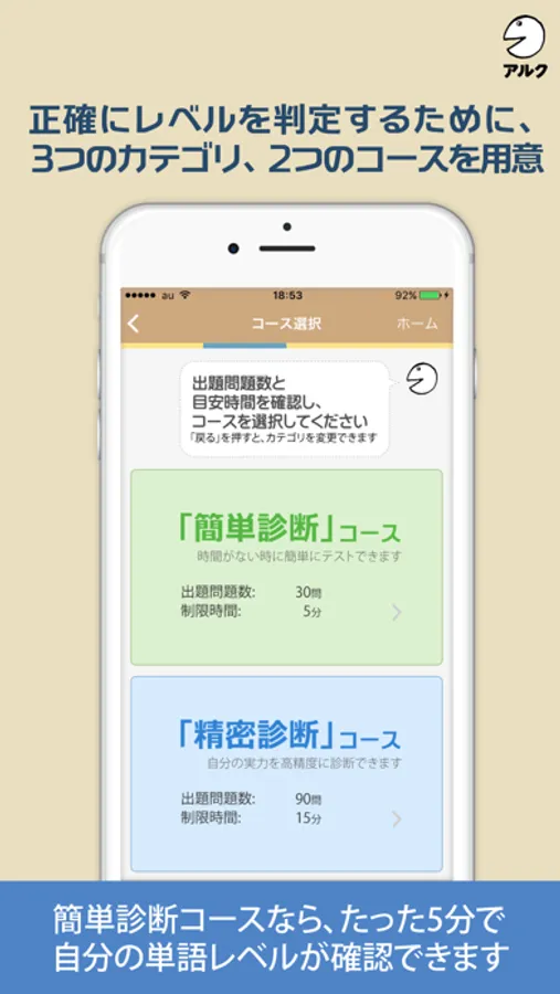 ・ 簡単診断コースなら、たった5分で自分の単語レベルがすぐに確認できます。