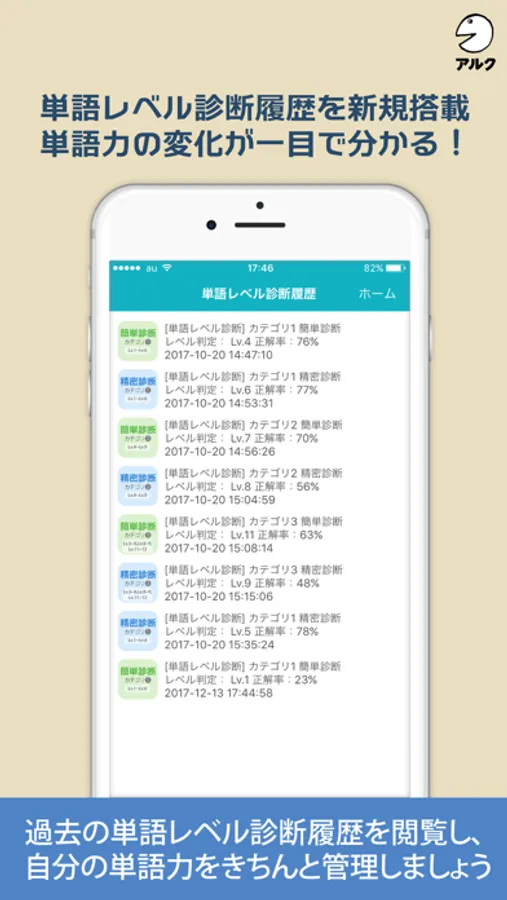 ・ 「単語レベル診断履歴」を搭載し、過去の診断履歴も閲覧することができます。