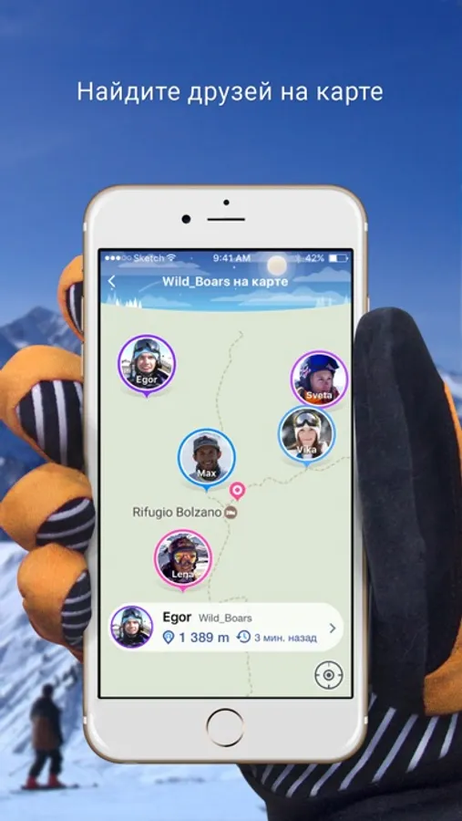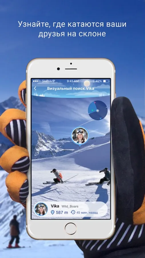 Достаточно провести смартфоном по склону горы, чтобы увидеть местонахождение всех друзей с указанием расстояния до них.