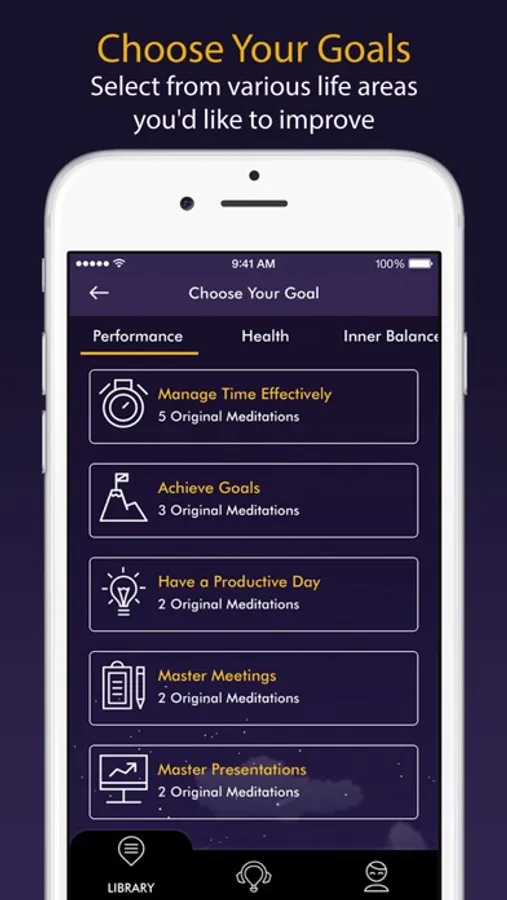 With Meditable, you can use enjoyable and effective mental techniques to reach your career, health, emotional and spiritual goals, in a unique customizable way.