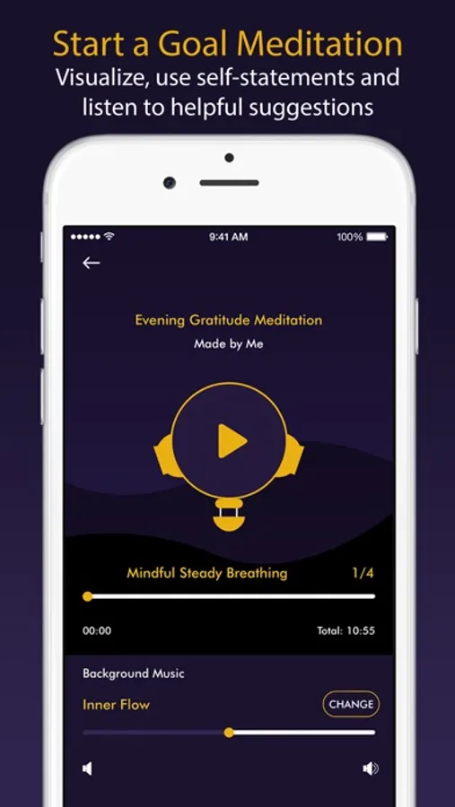 Meditable empowers you to personalize your guided meditation experience. It gives your meditation sessions a boost, as you can - for the first time in meditation apps' history - totally personalize a guided session to fit your goals and schedules.