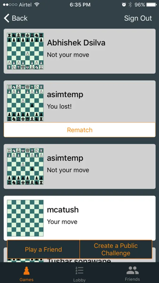 - View open challenges in the Lobby or create an public challenge