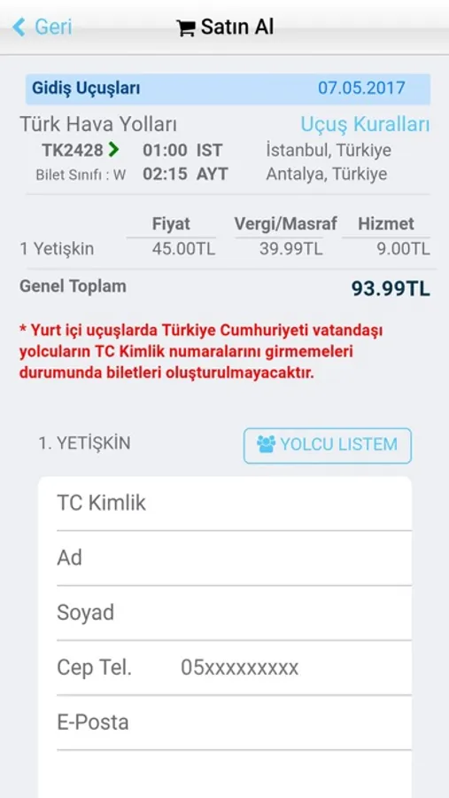 Hesaplibiletal.com uçak bileti uygulaması ile Yolcu Listem Özelliğini kullanarak her seferinde tekrar yolcu bilgileri girmenize gerek kalmadan kayıtlı yolcu bilgilerinden seyahat edecek yolcuları seçerek gerekli alanların otomatik olarak doldurabilirsiniz.
