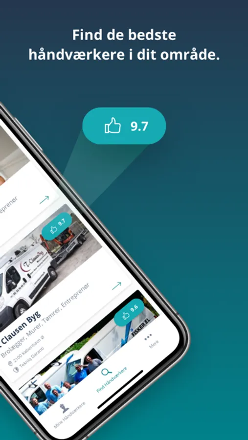 I app'en finder du de bedste håndværkere baseret på dokumenteret kundetilfredshed. Du kan stole på vores tilfredshedsscore, da kun reelle kunder, som har modtaget en faktura kan lave anmeldelser.