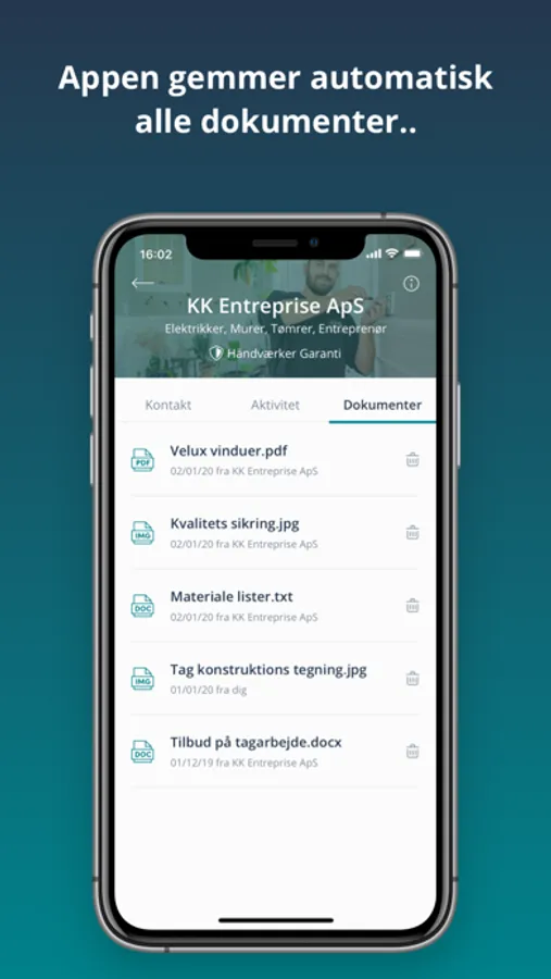 App'en samler automatisk alle dokumenter, som udveksles, så du har nem adgang til dem: Tilbud, aftaler, priser, mv.