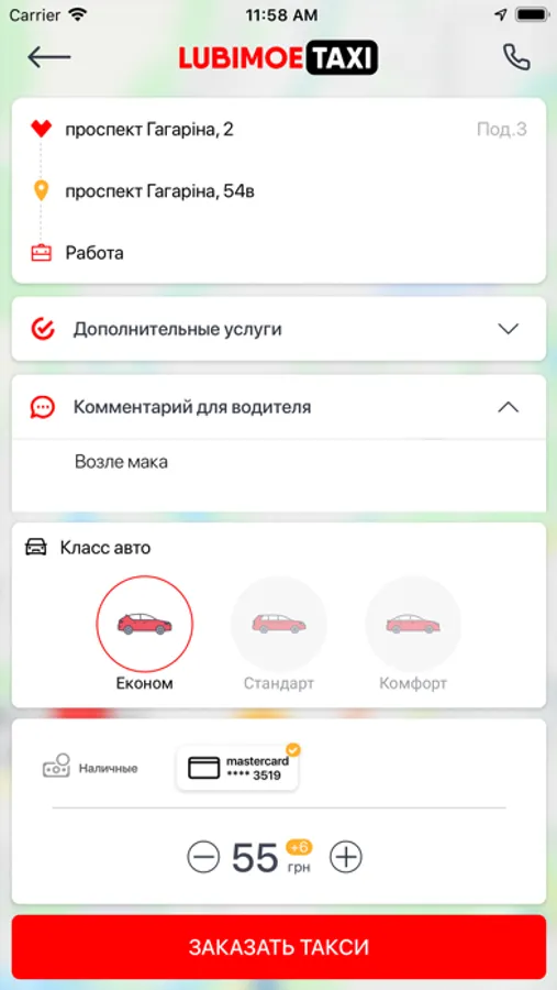 • Дополнительные услуги (пустой багажник, перевоз животного, комментарий к заказу) без дополнительной платы;