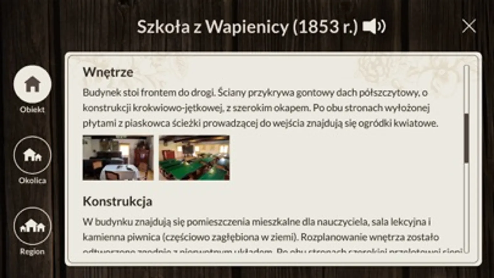 Aplikacja wzbogaca doświadczenia zwiedzających na miejscu jak również umożliwia wirtualne wycieczki po terenie Muzeum Górnośląski Park Etnograficzny w Chorzowie. Dzięki wykorzystaniu najnowszych technologii takich jak rozszerzona rzeczywistość, filmy 360 oraz iBeacons aplikacja zapewnia niezapomniane wrażenia małym i dużym odkrywcom historii regionu.
