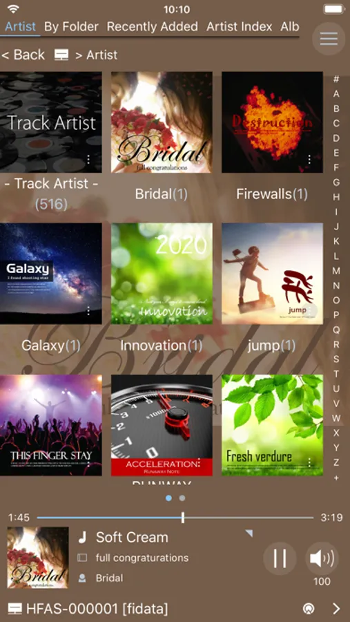 You can customize the layout, coloring, display size of artwork, etc. about fidata Music App by the user's preference.