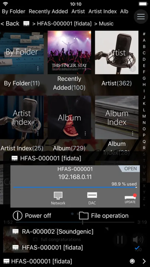 In combination with fidata Network Audio Server HFAS1, file operations of connected USB storage can also be performed, so even in environments without a PC, it is possible to organize and move/copy on your music libraries.