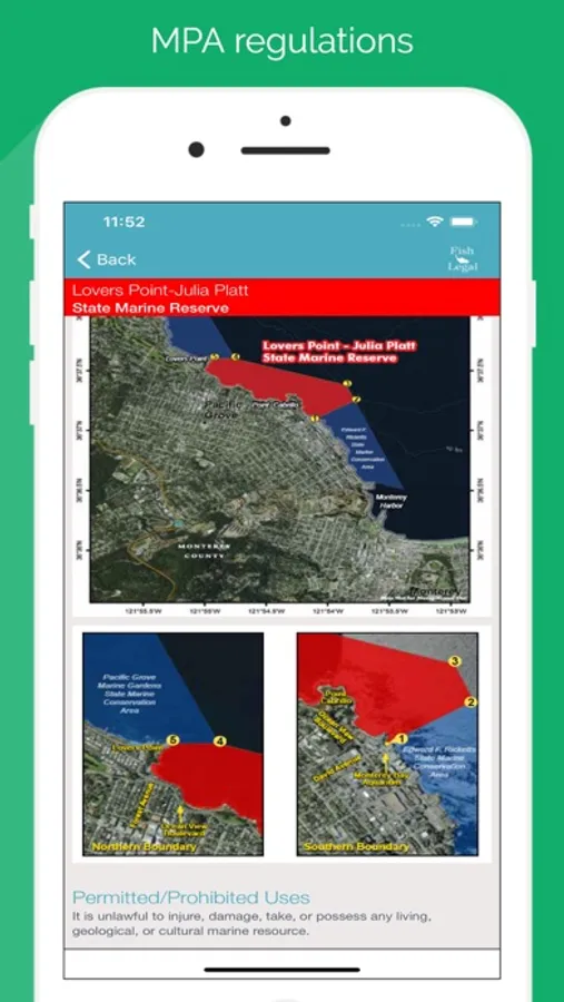 Offline Maps of California Marine Protected Areas (MPA). GPS location allows accurate positioning relative to MPAs, so you will know your exact location, where to fish legally and where to avoid! Completely offline capable, look up the map and info even without cellular signal!