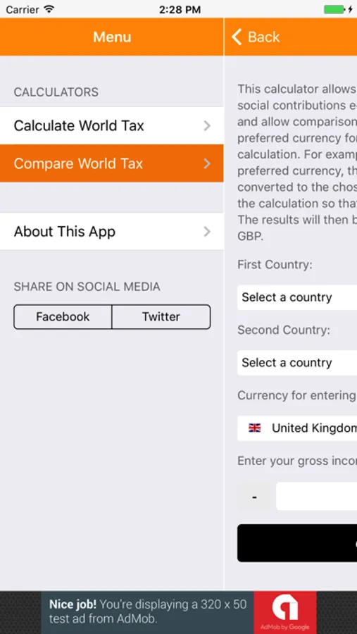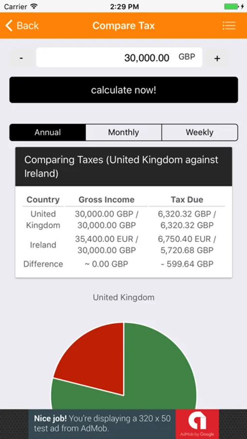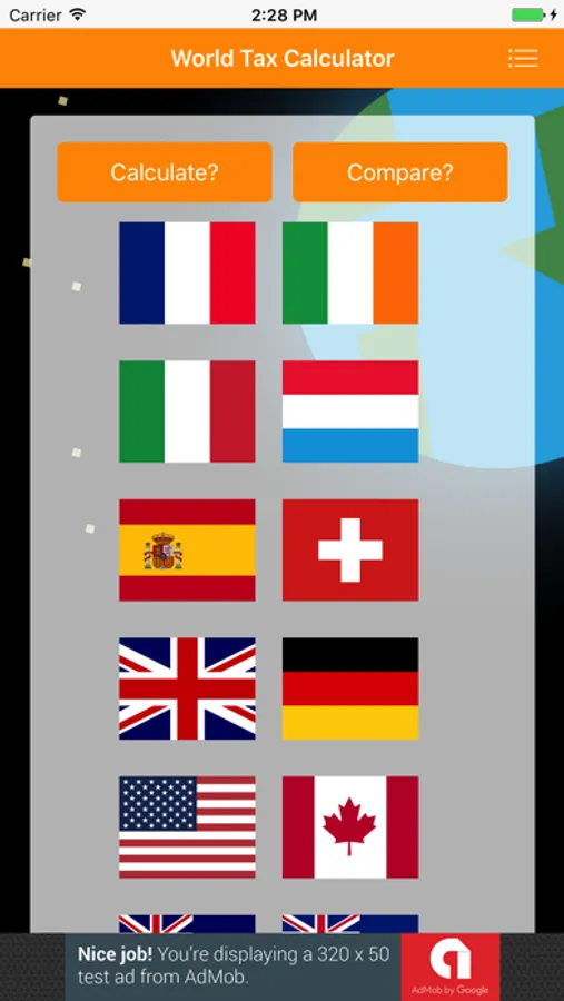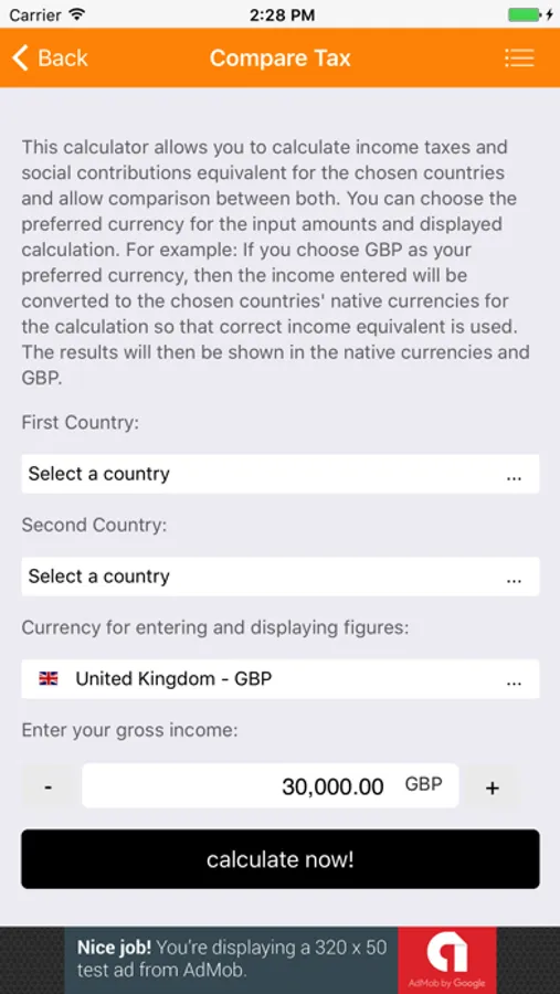 The app will quickly calculate and compare France tax, Ireland tax, Italy tax, Luxembourg tax, Spain tax, Switzerland tax, United Kingdom tax, Germany tax, United States tax, Canada tax, Australia tax, New Zealand tax, Japan tax, India tax, China tax and United Arab Emirates tax.