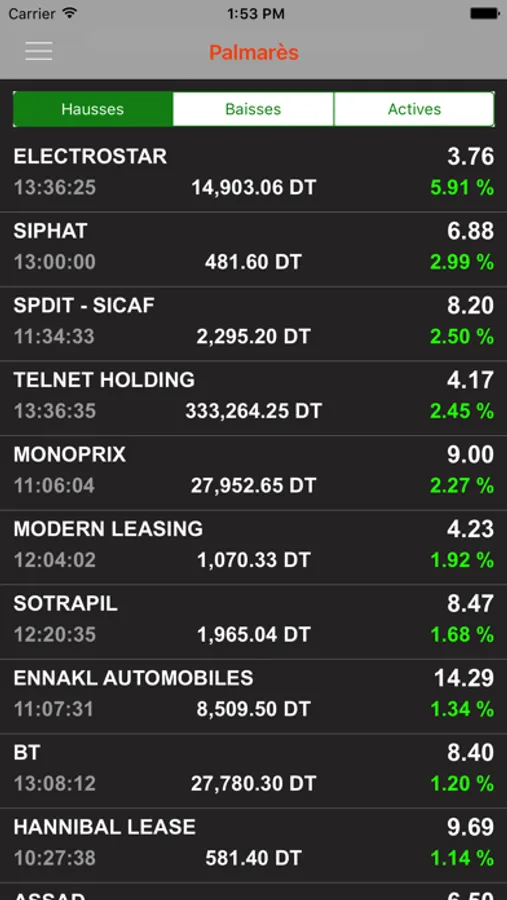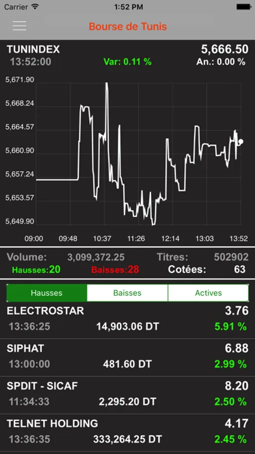 - De suivre les cotations des indices et valeurs du marché de la bourse de Tunis.